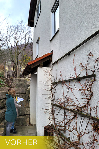 sitzt die Doppelhaushälfte unserer Bauherrschaft am steilen Osthang von Gönningen und gemeinsam schauen wir beim ersten Termin aus den schön gestalteten Wohngeschossen über den Ortskern und auf die herrliche Aussicht. Das Problem liegt hier tiefer. Im Untergeschoss nämlich befindet sich neben Keller und Technik auch der Eingang und der Wunsch nach weiteren Wohnräumen. Aber hier fehlt es enorm an Licht, Raum und Charme.